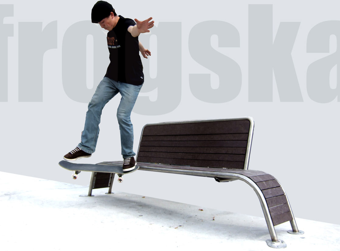 Etudié pour la glisse sous toutes ses facettes, le banc Frogska va à la rencontre des protagonistes du skate ou du roller et autorise les possibilités de détente. Le banc FROGSKA affirme une reconnaissance des sports de glisse urbains. FROGSKA propose une vision de l’espace public qui favorise le regroupement, la convivialité et l’interaction.