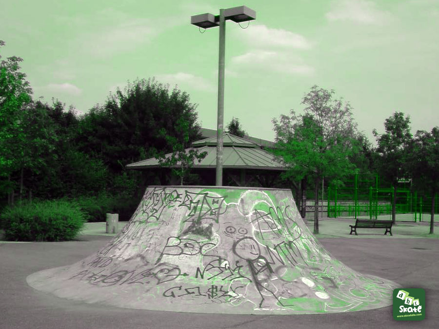 Le Volcan est aussi très raide mais, disposé au milieu du skatepark, dispose d’un bon élan. On peut avoir du surper sensation sur ce type de module.