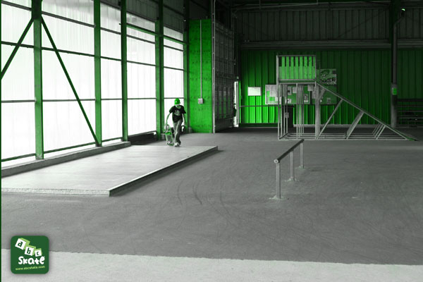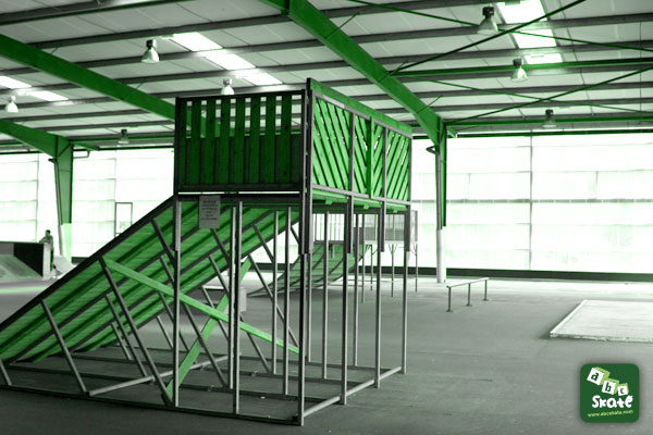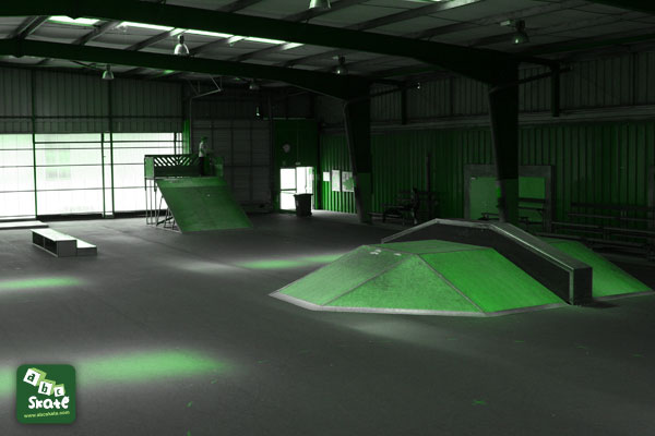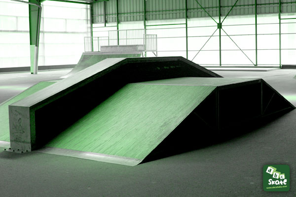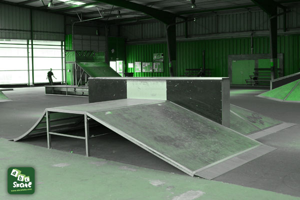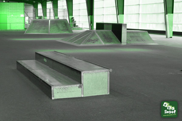 Voici les différents modules que contient le skatepark couvert de Poitiers :