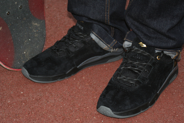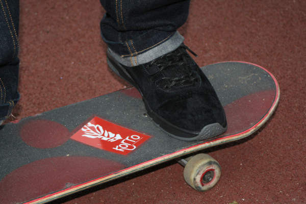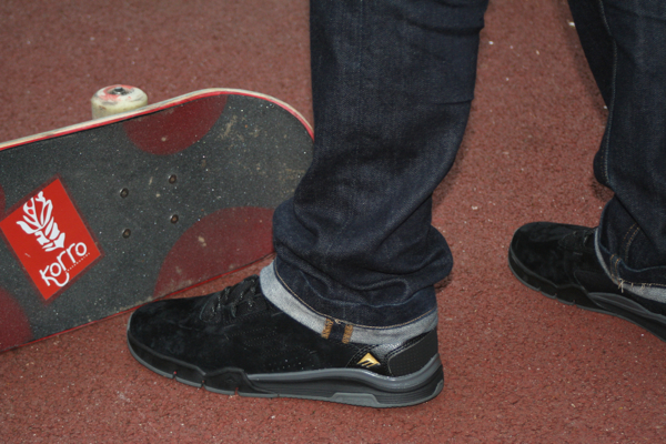 – Le bout de la chaussure « pointu » : ce qui n’est pas commun dans les chaussures de skate, on est en général sur un bout arrondie. Ici avec la nouvelle chaussure Emerica Westgate, le bout ressemble à une chaussure de running. Nous pensons que c’est l’évolution et la professionnalisation du skateboard qui va rendre les chaussures de skate de plus en plus technique. Le bout de cette chaussure de skate évite de détruite le bout de la chaussure lors d’un ollie flip varial 360° par exemple.