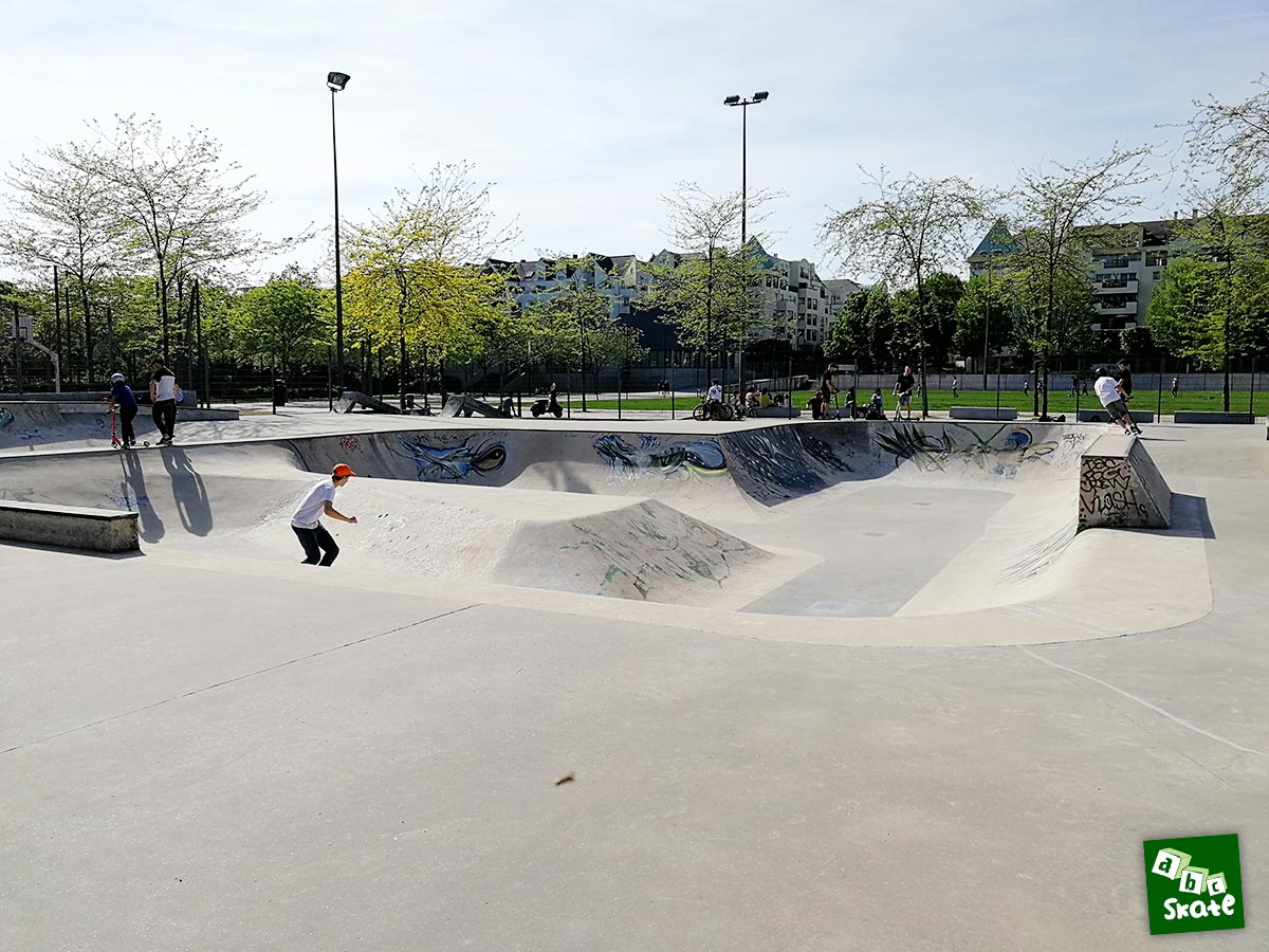 Ce n’est pas ici que les voisins seront dérangeants car le skatepark est entouré d’un parc et d’entreprises. Seuls défauts, le skatepark n’est pas ou très peu éclairé et il n’est pas ouvert en continu : 9h/19h en hiver et 9h/22h en été.